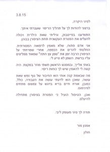 3.8.15 לסיגי היקרה, ברצוני להודות לך על תהליך הריפוי שעברתי איתך. התוודענו בפייסבוק, וגיליתי שאת הילרית ויכולה להעלים את הפטרת העקשנית תחת הציפורן בבוהן. אני