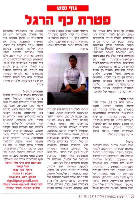 העצירות והגרד באוזניים נעלמו ביום שלאחר הטיפול. אופיר הגיע לשני טיפולים נוספים לשם ריפוי נזקי הפטרת, אבל כבר אחרי הטיפול השני ביצע בדיקת דם, שהראתה שרמת הסוכר בדמו נורמלית. אחרי כחודשיים סיפר: "לא תאמיני, הממונים עלי החליטו להעלות אותי בדרגה, וגם לשלוח אותי לקורס חשוב. המשמעות היא תוספת ניכרת למשכורת". "ברור שאני מאמינה", עניתי, "ידעתי, שאם תשפר דימוי עצמי, הסביבה תעריך אותך יותר. נו, מה עם הפטרת בכף הרגל?", והוא צחק: "איזו פטרת? שכחתי ממנה. הכי חשוב שאני מאושר בעבודה וסוף סוף מעריכים אותי כמו שצריך".