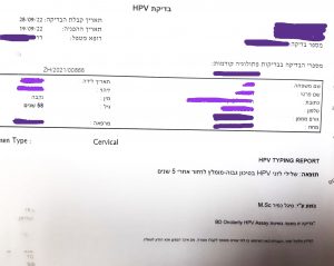 מטופלת הגיעה אלי כשסבלה מווירוס פפילומה (HPV) פעיל בצוואר הרחם. במהלך הטיפול הסברתי לה את משמעות הווירוס שמעיד על חרדת נטישה והיא תיקנה מיד ברמה הנפשית,
