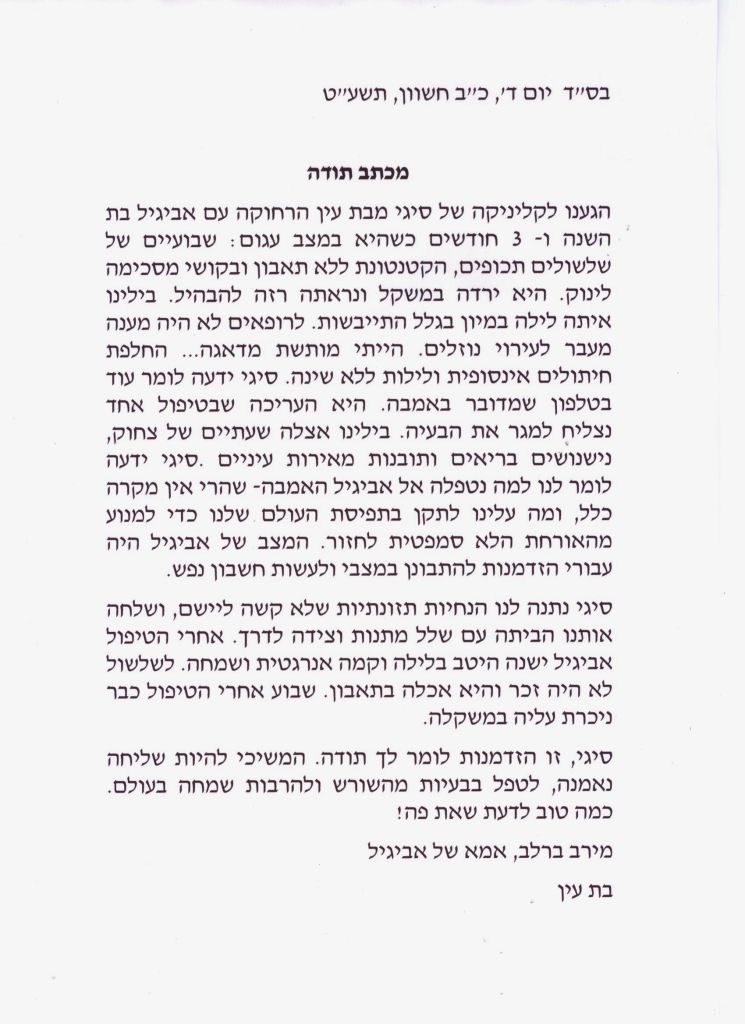 מכתב תודה