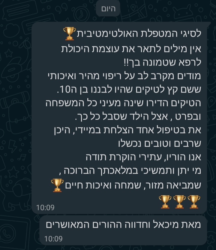 מודים מקרב לב על ריפוי מהיר ואיכותי ששם קץ לטיקים שהיו לבננו בן ה10.