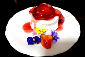 קישטנו בתותים טריים, באוכמניות טריות, בפרחי מאכל כמו אמנון ותמר קטנטנים, ובסוף קישטנו גם בסירופ תותים קל להכנה. יצא חלומי!