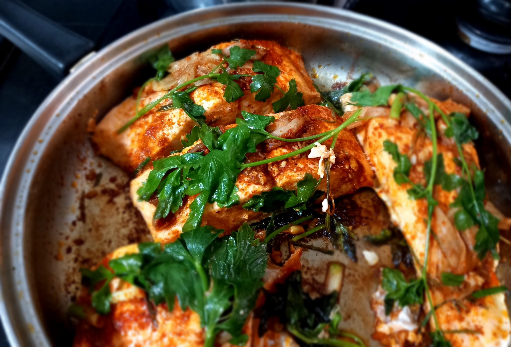 סלמון (או אמנון או כל דג אחר) פרוס ל- 4 עד 6 חתיכות גדולות בצורת פרסת סוס או 4 עד 6 נתחים של פילה סלמון או 2 דגים קטנים ללא ראש