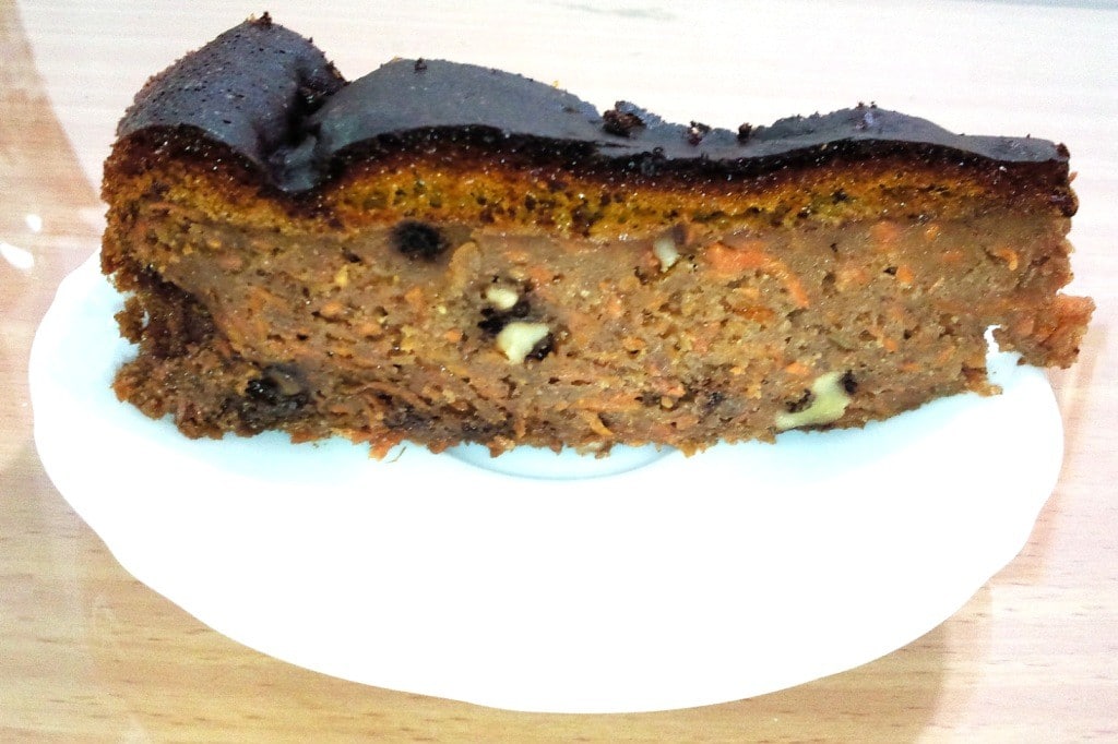 לערבל היטב לקצף צהבהב את הביצים במערבל עם וו מטרף (דמוי מטרפה). להוסיף את כל החומרים (את הסודה לשתיה להמיס בתוך התה) למעט גזר, מים, חומץ ואגוזים. לקראת הסוף להוסיף גזר ולערבל. לשפוך פנימה חומץ ולערבל. אחרון אחרון חביב: כוס של אגוזי מלך ו/או פקאנים קצוצים גס או שלמים. רבע כוס מים- להוסיף רק אם הבלילה סמיכה מדי ולא כמו של עוגה בחושה.