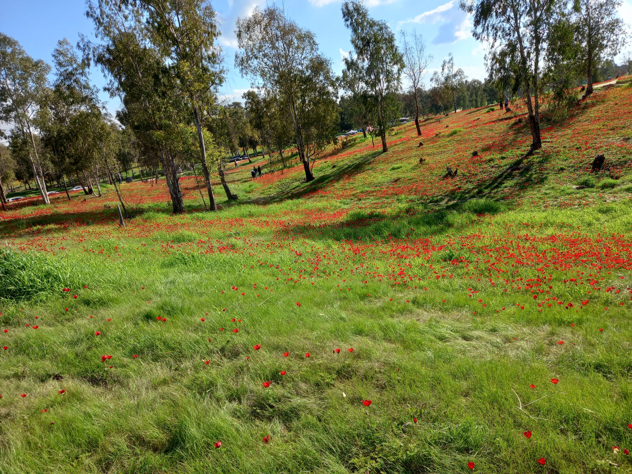 אחר כך הגענו לחניון מרווה ובהמשך ליער שוקדה. אין צורך לצאת לכביש הראשי- יער שוקדה נמצא בהמשך חניון מרווה. ריכוז הכלניות ביער מרשים ועולה ביופיו על זה של בתרונות רוחמה. עצה למצטלמים: אל תרמסו כלניות. אנא הצטלמו לצידן היכן שיש עשב ללא כלניות, כלומר בלי לשכב או לשבת עליהן.